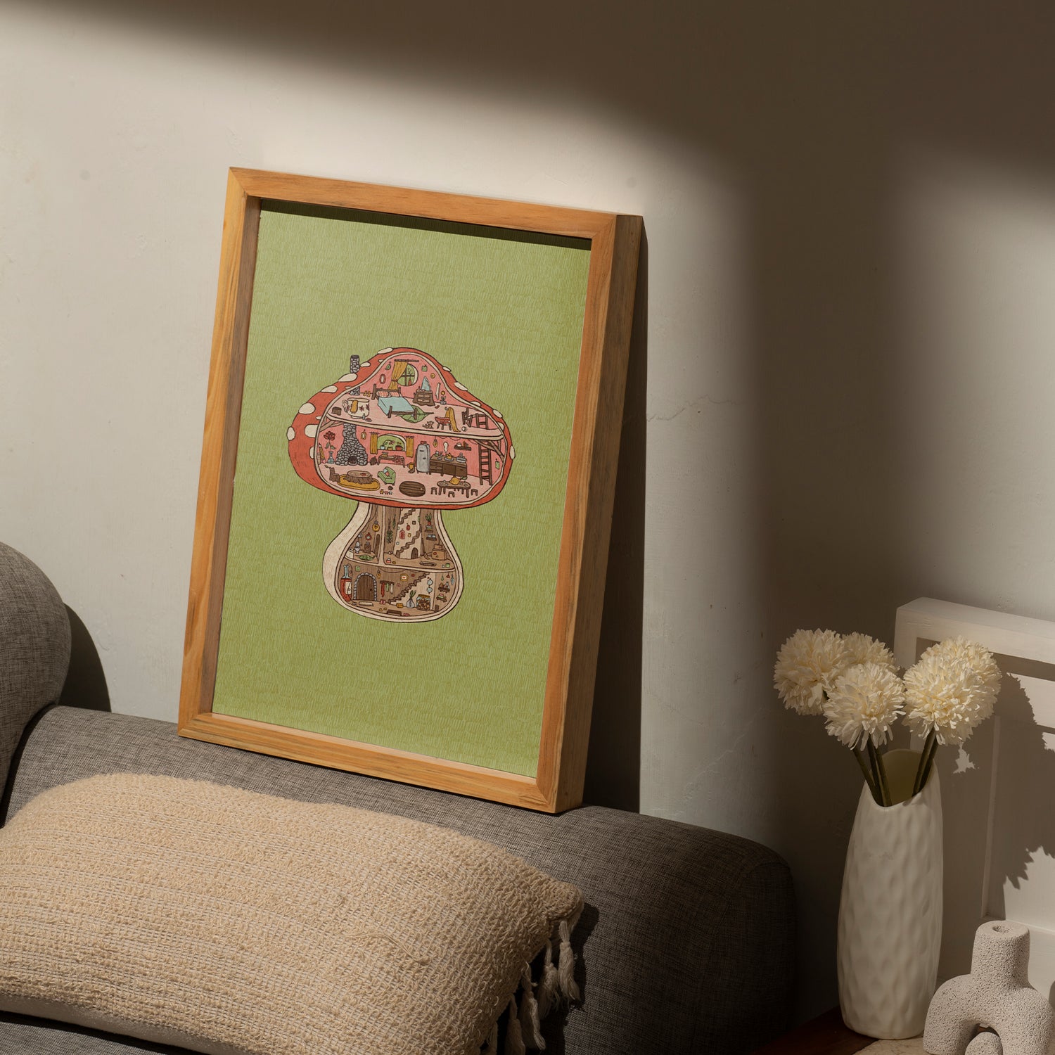 Tiny Mushroom Cottage print - A4