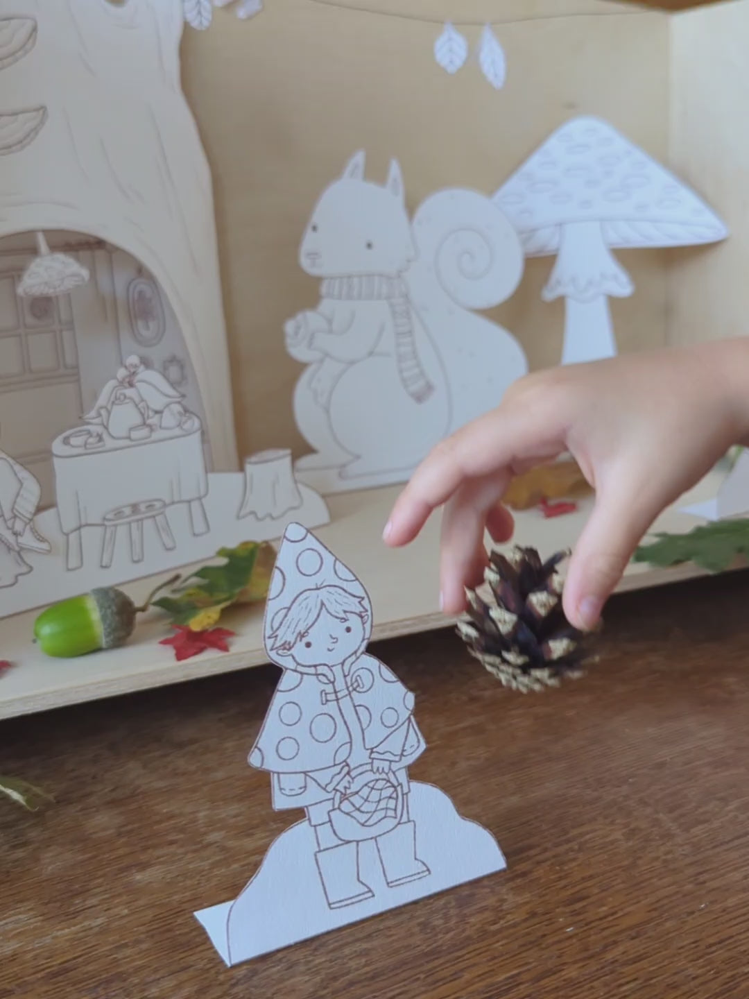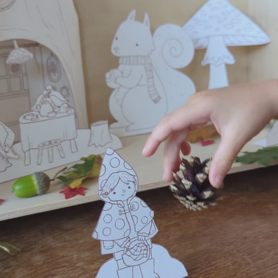 Celebrate this season together with these cute gnomes, their home and their forest friends. You can use this printable to make a beautiful display to teach children about the changing seasons of nature. But of course it’s also a fun scene to play with or use in storytelling. Or what about decoration for a fall birthday?