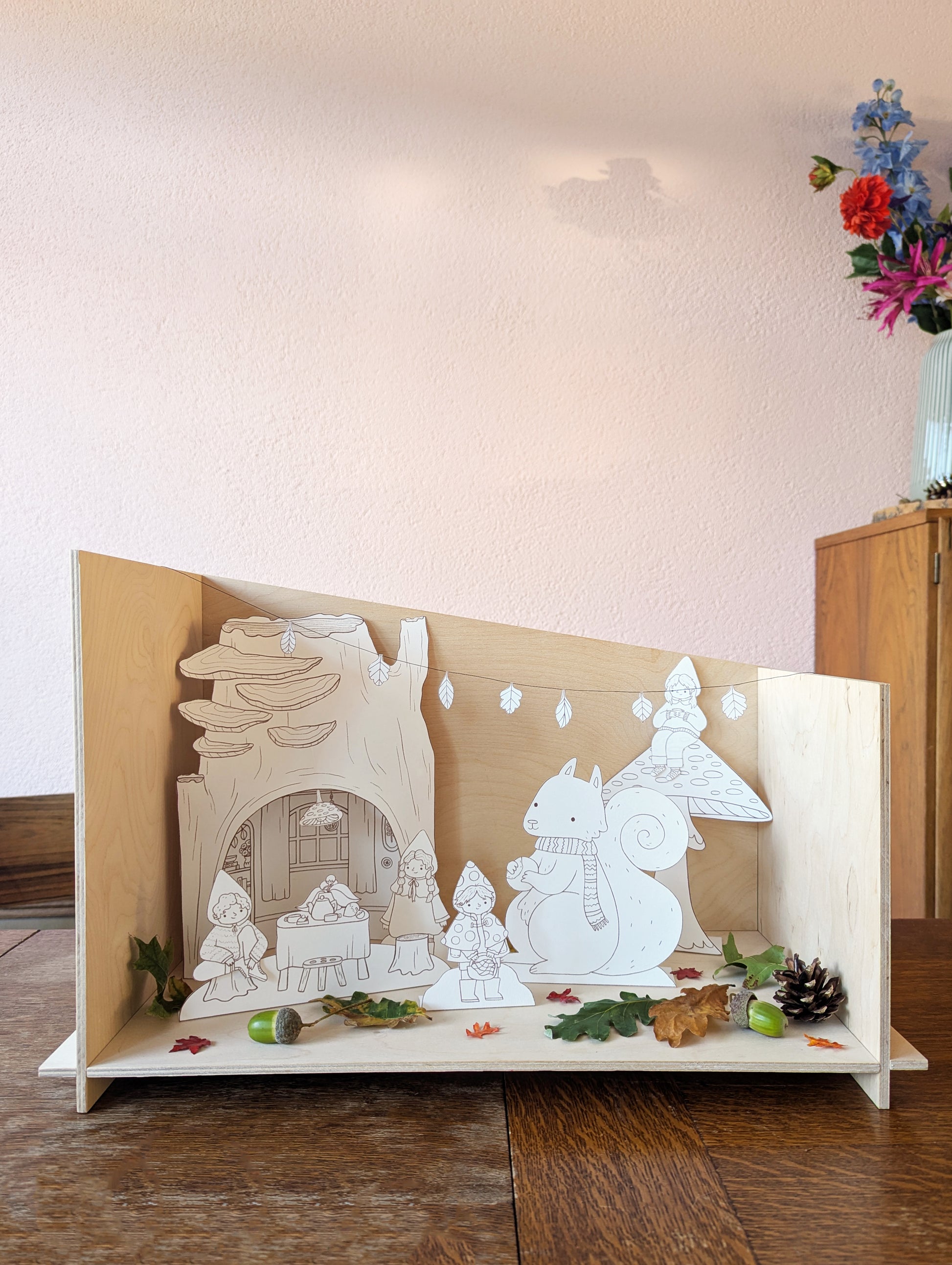 Celebrate this season together with these cute gnomes, their home and their forest friends. You can use this printable to make a beautiful display to teach children about the changing seasons of nature. But of course it’s also a fun scene to play with or use in storytelling. Or what about decoration for a fall birthday?