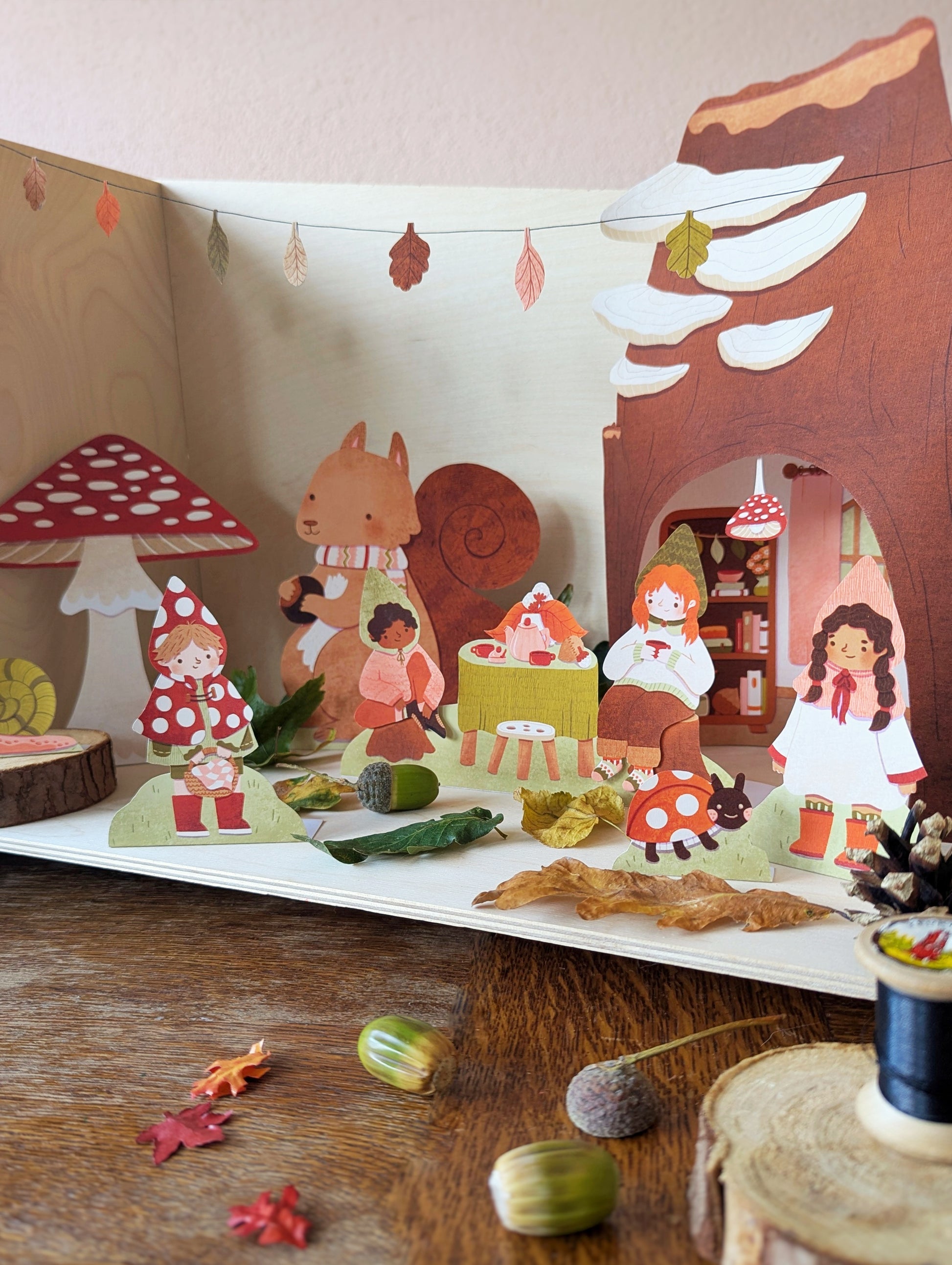 Every fall, or autumn, these forest friends come together to celebrate the season of the Fall of the Leaf. They feast on acorn tea, mushroom soup and apple pies as they prepare for a cold and cozy winter.