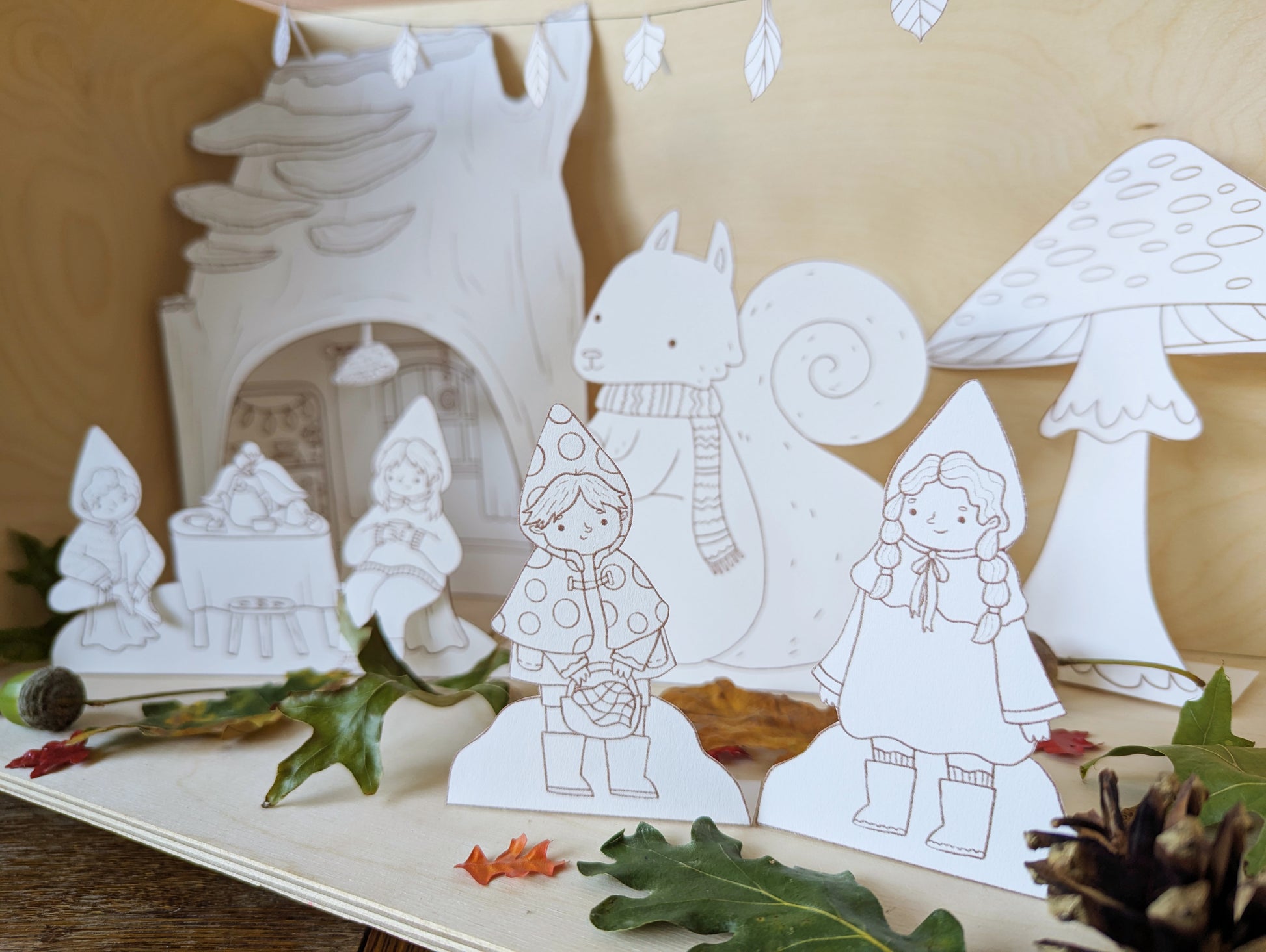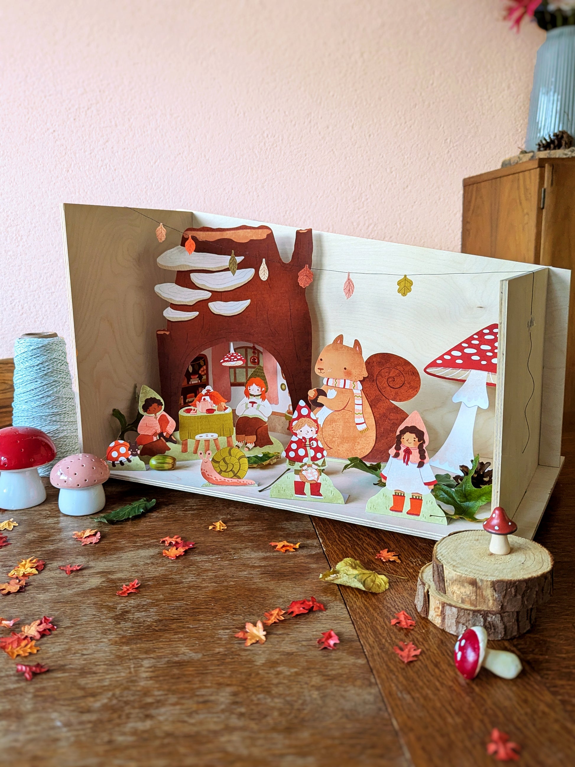 Celebrate this season together with these cute gnomes, their home and their forest friends. You can use this printable to make a beautiful display to teach children about the changing seasons of nature. But of course it’s also a fun scene to play with or use in storytelling. Or what about decoration for a fall birthday?